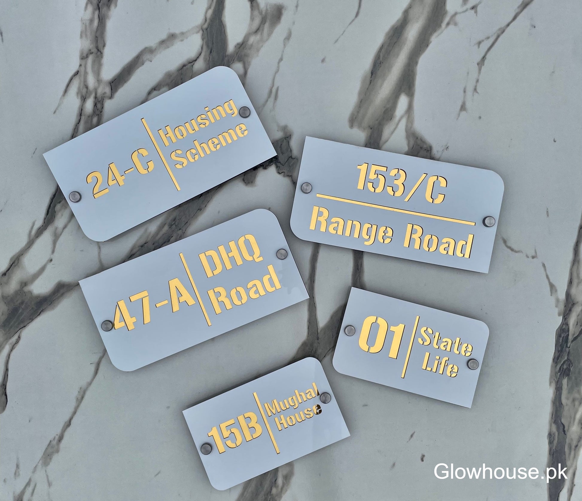 Customize Outdoor House Numbers Plate ( White with Golden )